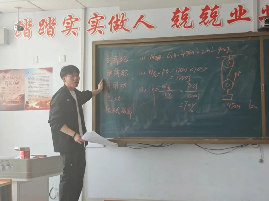 卓资县德慧学校于当日下午14:30专程到物理与电子信息工程学院在逸夫楼405举办了专场面试招聘会。面试会上先给出主讲题目,30分钟的备课后,我院共有两位同学做了面试试讲,均应聘初中物理教师。在面试招聘会上,两名同学对八年级下册教材中的滑轮和机械效率进行讲解,发挥稳定,态度端正,获得了面试官的高度认可。