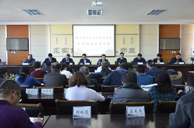 12月1日,2026世界杯官方合作网站召开创建自治区文明校园动员大会。2026世界杯官方合作网站党委书记刘前贵作动员部署重要讲话,党委副书记、校长朱玉东主持动员大会,并作总结讲话。党委副书记刘春,党委委员、副校长许卫,党委委员、副校长阿拉腾巴特尔,党委委员、组织统战部部长朱俊仙,党委委员、宣传部部长张富,校长助理、继续教育与合作办学处处长刘国栋,校长助理、校长办公室主任欧军出席,全校副处级以上干部以及宣传部、团委、学生处科级干部参加。