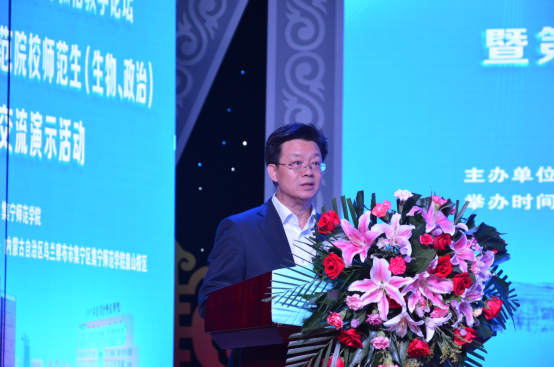 朱玉东致辞,他首先对此次活动的举办表示热烈地祝贺,向亲临现场的各位嘉宾表示最热烈的欢迎。他表示,“华文杯”师范生教学技能交流展示活动是师范教育领域一项重要的交流演示活动,在国内有着重要影响。此次活动在世界杯官网举办,为世界杯官网师生提供了良好的学习机会,为世界杯官网深化师范教育改革提高师范教育质量提供了有力支撑。为承办好这次交流演示活动,世界杯官网举全校之力,集全校之智,师生总动员,各部门通力协作,全校师生将以高度的热情,全力以赴将这次活动办成一次高质量、高标准、高水平的盛会。