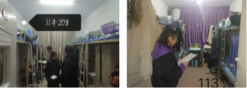 检查内容包括宿舍卫生情况与用电等安全问题,学院领导和老师,有针对性的对宿舍进行了详细检查。重点对宿舍卫生、用电安全以及防火、防盗等诸多方面进行了检查,针对学生反映的一些难以解决的宿舍问题进行排查和记录。经过精心检查,发现宿舍卫生状况普遍良好,学生基本做到了被褥衣物叠放整齐,保持地面、桌面干净整洁,用电合理、安全等。同时,也发现个别宿舍“不达标”,存在卫生死角,空气质量较差,手机充电器使用不合理等问题,检查组及时指正,并向学生提出了改进方法。