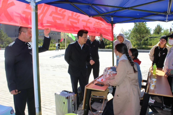 朱玉东一行到校园的志愿服务工作站、各二级学院报到处、发放军训服等处实地看望慰问。每到一处,朱玉东一行都驻足询问,详细了解迎新工作的组织情况和工作进展,对在一线辛勤工作的师生表示慰问,叮嘱大家要严格认真落实常态化疫情防控措施,周全细致做好迎新服务工作,保障2020级新生安全顺利完成报到入学。另外,朱玉东一行还特意嘱咐忙于工作的师生和志愿者,近日气温骤降,工作的同时,要多加添衣物,注意个人保暖健康。
