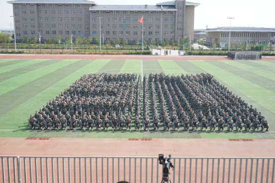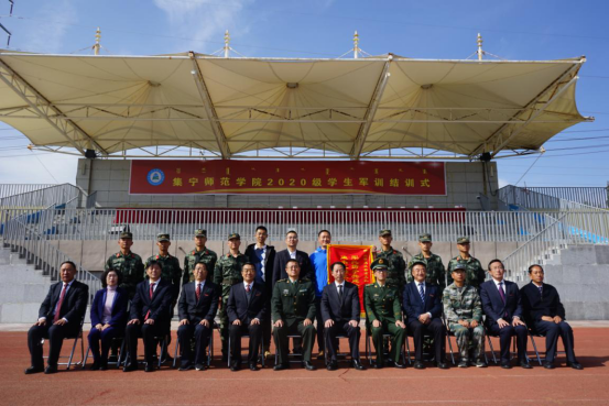 全体执训官兵与部队首长、学校领导、部门负责人合影留念。