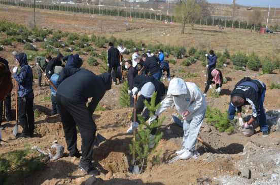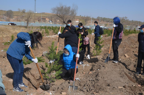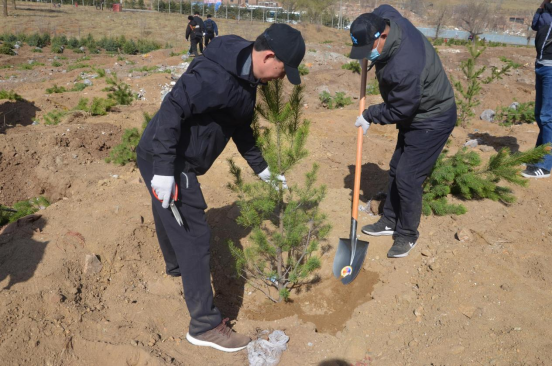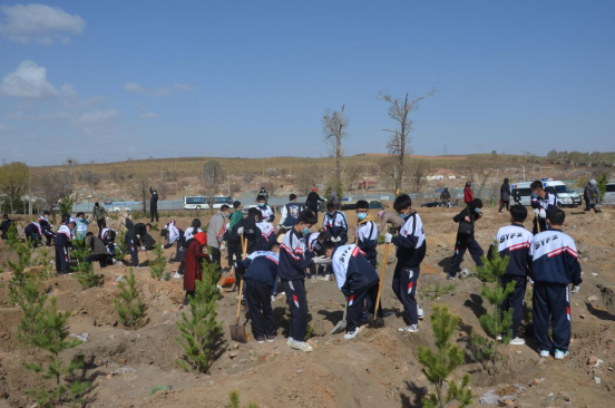 活动开始后,全体师生热情高涨,摩拳擦掌,争先恐后地行动起来,大家纷纷在划分好的责任区内种植树木,师生们有的挖坑,有的扶树,有的培土,大家分工合作、默契配合,一派繁忙有序、热火朝天的景象。经过紧张奋战,一棵棵树苗在春风中摇曳,待吐新绿,在明媚的春光中形成一道美丽的风景线。