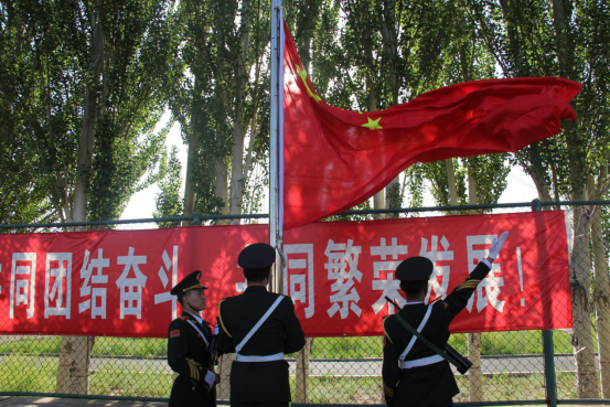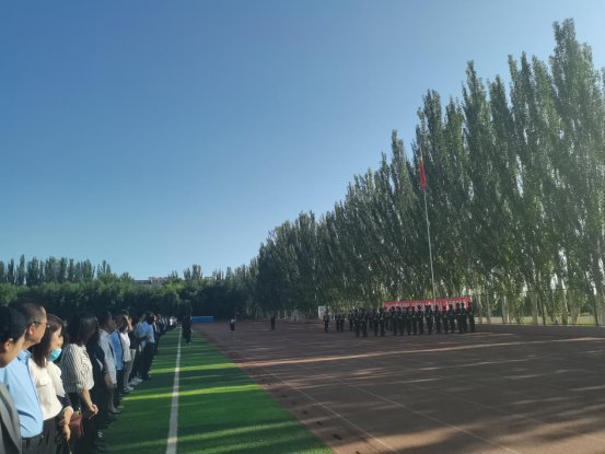 迎着七点半的朝阳,全体师生肃立,注视着五星红旗同旭日一同冉冉升起,师生齐唱国歌,用嘹亮的歌声抒发心中的爱党情、爱国情。
