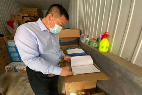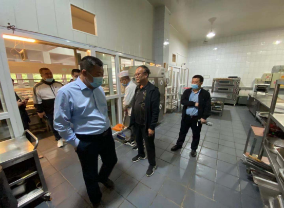 校纪委人员对学生餐厅和防疫物资仓库进行实地督查。餐厅管理者介绍,他们已经对餐厅进行了卫生大清扫和全面消杀,在门口张贴了戴口罩、扫行程码要求的通知。