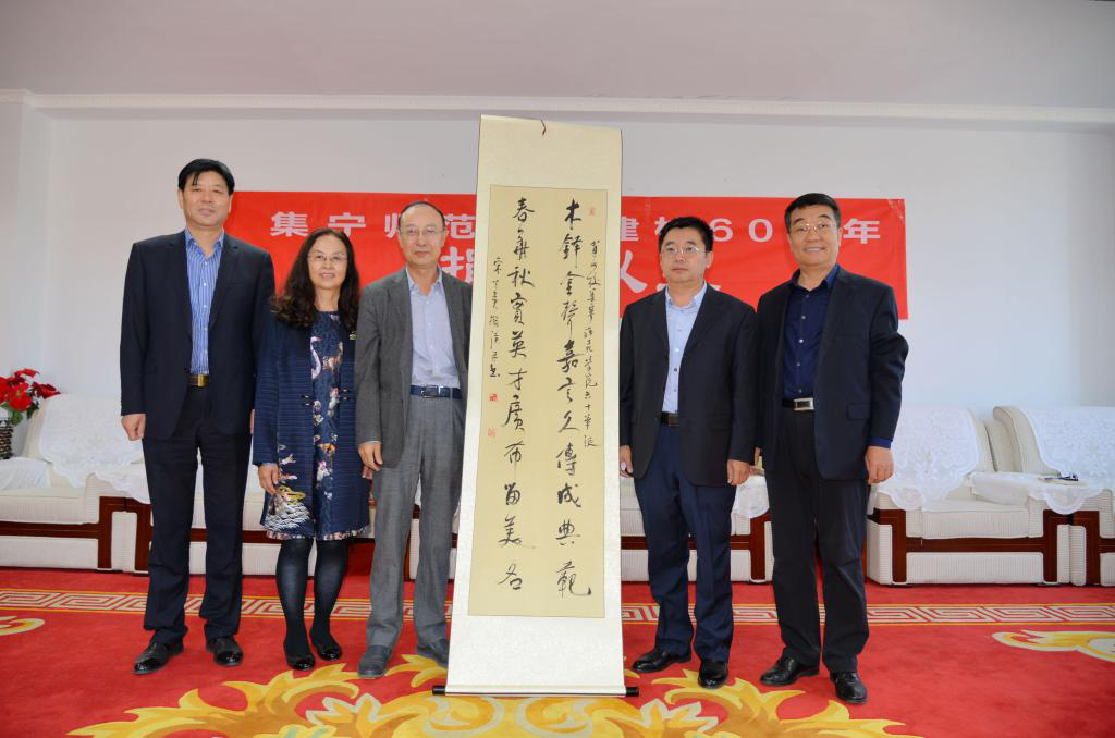 宋生贵向母校捐赠了他的著作30余种,捐赠了他为母校60年校庆撰写的联句书法:“木铎金声嘉言久传成典范,春华秋实英才广布留美名。”刘前贵书记、朱玉东校长接受了捐赠,聘任宋生贵为学校特聘教授,向宋生贵夫妇赠送了学校校徽。
