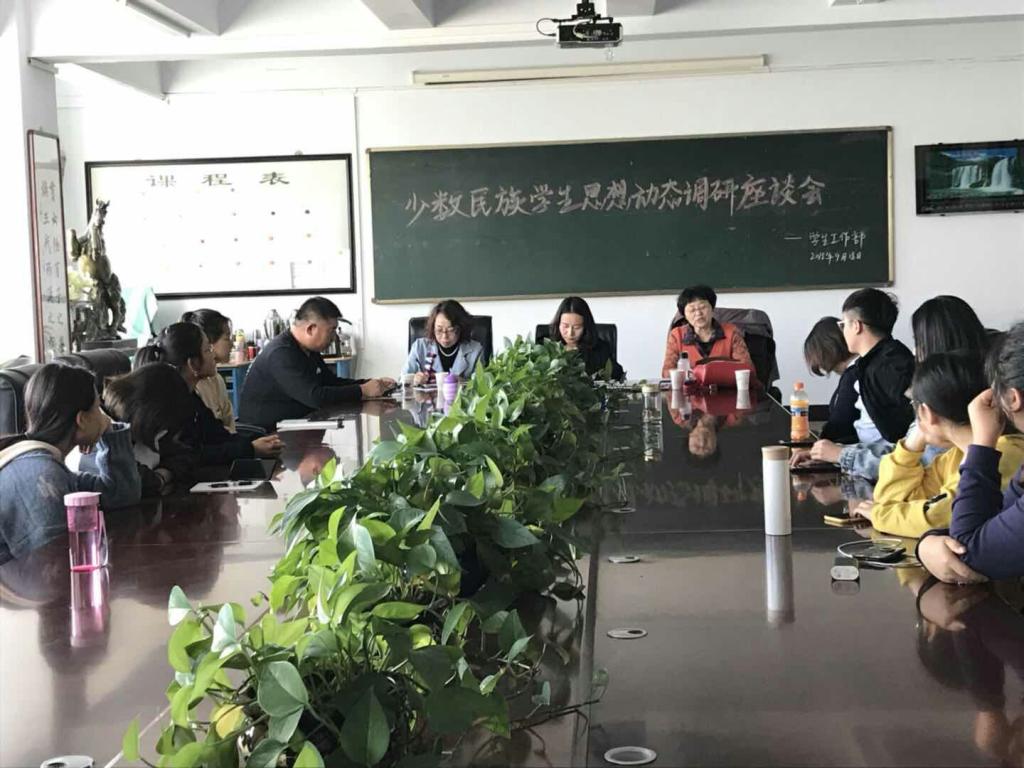 9月18-19日,学生工作部(处)在泉山和白海两个校区分别组织开展少数民族学生思想动态调研座谈会。学生工作部(处)副处长额尔敦其其格、思政教育科科长黄倩、新疆维吾尔自治区派驻世界杯官网教师张惠莉与30余名新疆籍在校生进行了座谈。