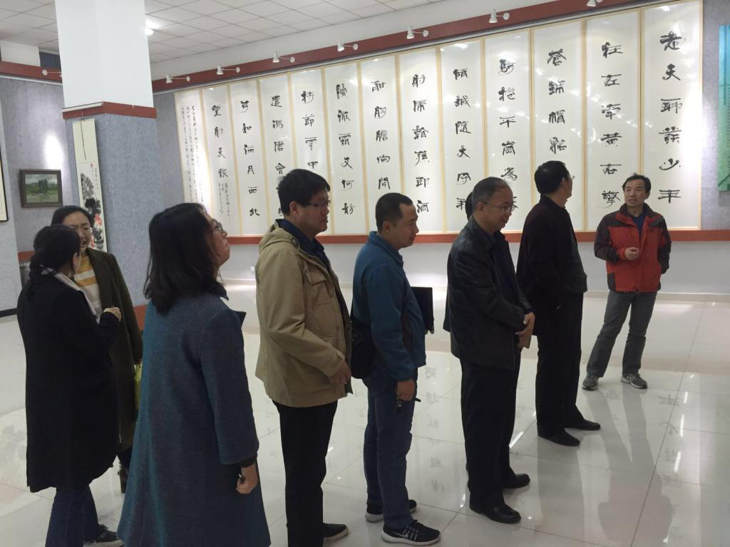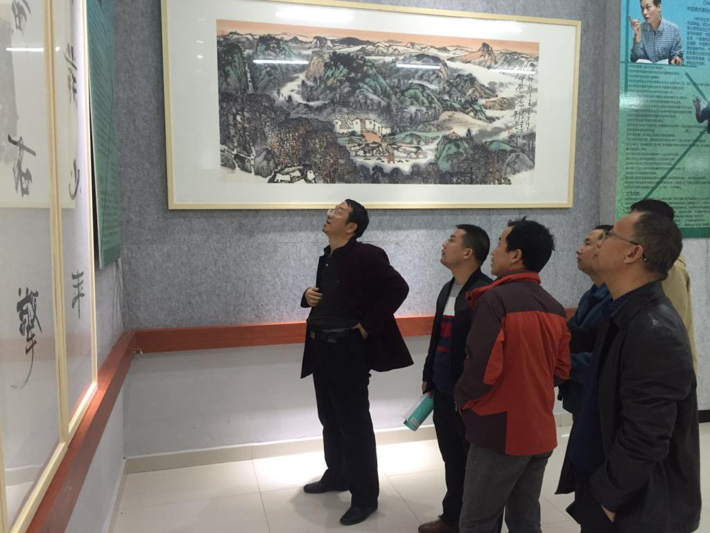 检查结束后,梁政一行观看了美术学院展厅所陈列作品。