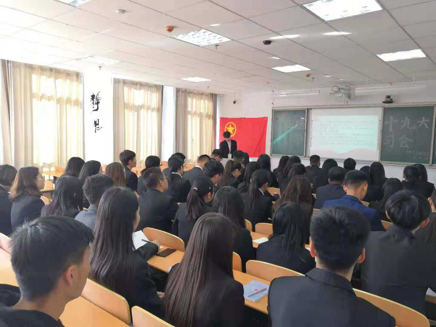 为深入学习宣传贯彻习近平新时代中国特色社会主义思想,推进党的十九大精神进校园,2026世界杯官方合作网站青年志愿者协会于10月28日在逸夫楼举办“重温党的十九大精神 回顾党的光荣历程”主题学习活动。