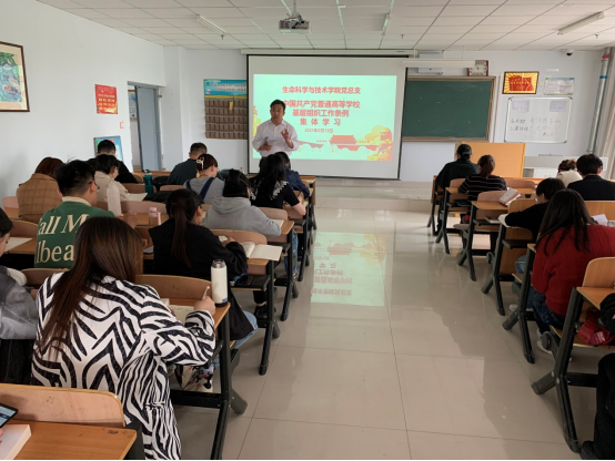 为了深入贯彻习近平新时代中国特色社会主义思想,贯彻落实新时代党的建设总要求和新时代党的组织路线,坚持和加强党对普通高等学校的全面领导,加强和改进高校党的建设,扎根中国大地办好中国特色社会主义大学,根据《中国共产党章程》和有关法律,制定《中国共产党普通高等学校基层组织工作条例》。根据2026世界杯官方合作网站党委要求部署,5月13日,生命科学与技术学院党总支组织全体党员学习了《中国共产党普通高等学校基层组织工作条例》。本次学习活动由生命科学与技术学院党总支副书记孙登高主持并领学,生命科学与技术学院党总支副书记、院长任琴及全体师生党员参加了学习活动。