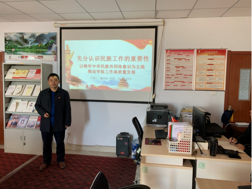 夏学利从“增强对中华民族高度认同、各民族共同奋斗一起发展、民族平等团结听党话跟党走、做好民族工作促进学院发展”四方面阐述了铸牢中华民族共同体意识、充分认识民族工作重要性等内容。