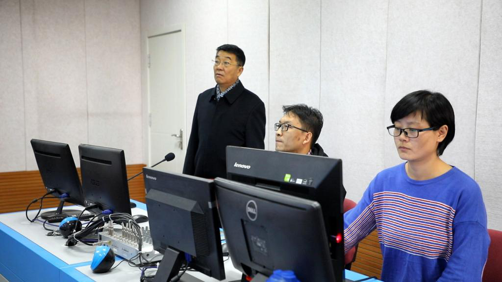 许卫在测试现场先后查看了侯测、备测、测试、系统测评等所有流,并亲临测试室了解学生的测试情况,随后又对工作站测前准备、测后延伸等工作的各个环节进行了详细询问。许卫在巡查中强调,普通话培训测试工作在学校转型、师范生专业认证的新形势下,只能加强、不能削弱。同时,许卫还对现场加班进行测试的工作人员表示慰问。