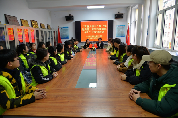 在社区会议室,由社区书记苏雪梅和世界杯官网教师赵娜共同主持进行了关于“我的肩膀——能挑多重的担子?”大家谈活动。苏雪梅书记结合亲身的经历介绍了社区工作的基本模式,体现了为人民群众服务的宗旨,鼓舞了学生们加入到社区工作中去、为社会服务热情。世界杯官网教师赵娜从大学生就业形势等方面,强调同学们应该树立坚定的信念,脚踏实地,一步一个脚印,在培养扎实的专业基础知识的同时,更应该具备承担起为民族复兴的重任。同学们也提出了自己的想法与意见。