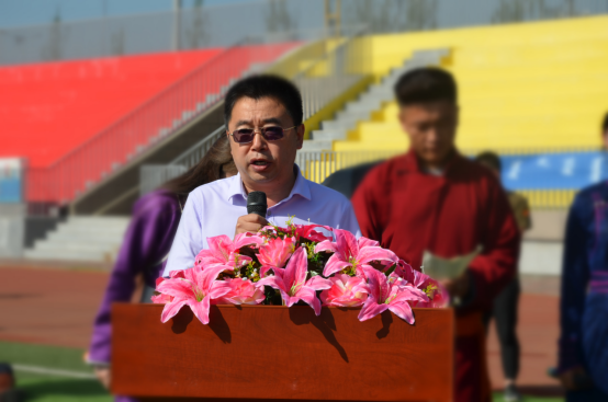 刘前贵致辞。他指出,校园那达慕是察哈尔文化艺术节的重要组成部分,活动有利于促进民族文化传承,丰富校园文化生活,展现当代大学生文采。预祝本校园那达慕圆满成功。