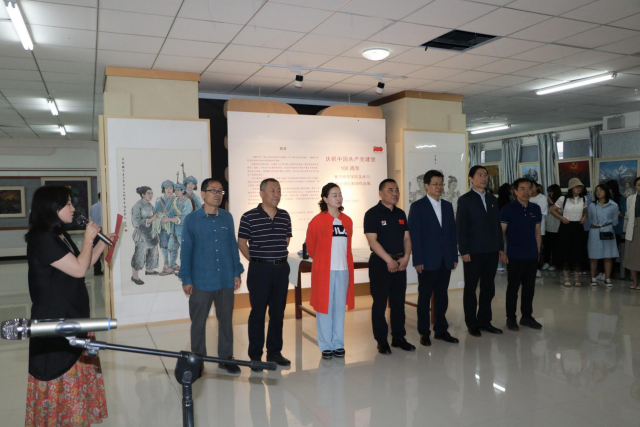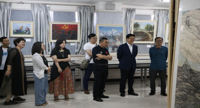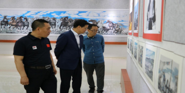 开幕式结束后,与会领导和学院师生共同参观了美术作品展览、党史知识展览以及客座教授王永鑫先生的作品《蒙古马精神百马图》《都贵玛连环画》。