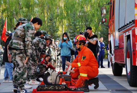 活动现场按照演练方案进行了“消防、地震灾害逃生演练”,观摩消防队特种灭火车辆操作和救援演习、抢险救援器材应用展示、灭火器实操等活动。