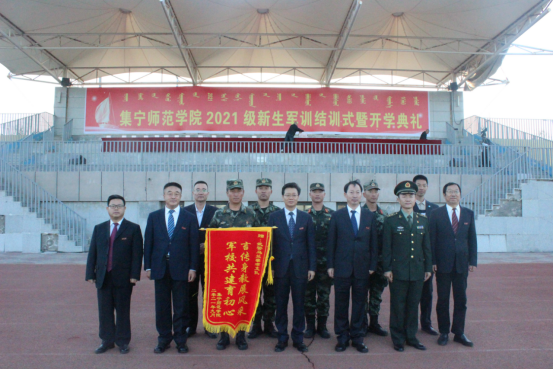 在庄严的升旗仪式中,全体人员起立行注目礼,奏国歌,升国旗。朱玉东下达“开始”命令后,2021级新生军训结训式正式开始。在校旗方阵的带领下,2021级新生组成的方阵迈着整齐的步伐依次接受检阅。集师学子飒爽的英姿迎着灿烂的阳光,明净的脸庞洋溢着青春的自信,他们满怀激情,踏着整齐雄健的步伐接受着检阅,展现了集师学子奋发向上的精神面貌。汇报表演结束后,朱玉东书记代表学校向武警乌兰察布支队赠送锦旗。