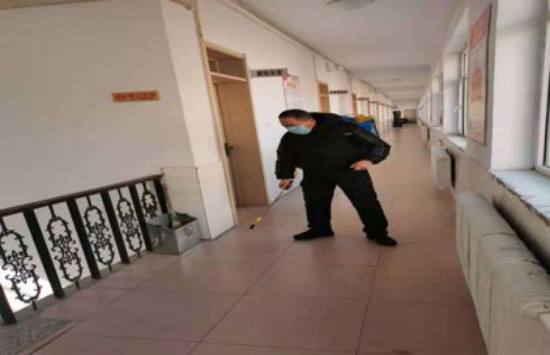 二是做好日常防护、消毒与环境卫生清理工作。疫情防控工作开展以来,后勤基建处立即对校园围栏进行加固维修,每天安排专门人员对教学楼、办公楼、餐厅等公共场所进行全方位灭菌消毒,组织清洁工对虎山校区家属楼卫生集中清理,及时清运垃圾,确保校园公共区域清洁卫生。
