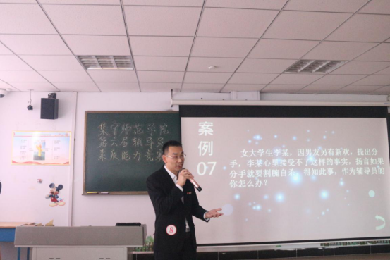 本次比赛分为案例分析、理论宣讲、谈心谈话三个环节,各环节以现场抽题和情景再现的形式对来自各个学院的14名选手的分析研判解决问题的能力,对相关政策、学生特征、学生成长成才规律的了解、对学生的教育引导能力,对语言表达、思想教育、心理辅导、日常事务处理能力以及对马克思主义理论、习近平新时代中国特色社会主义思想、党的十九大精神等的学习宣传阐释能力进行了全方位的考查。