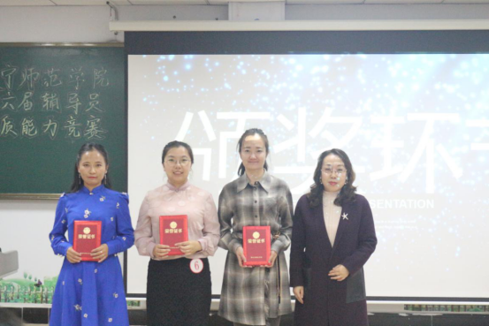 最终,经过评比,经济与管理学院邢彩霞获得一等奖,生命科学学院于博、现代服务学院赵思捷获得二等奖;文学院胡锦博、地理科学学院赵娜、蒙古学学院常红梅获得三等奖;计算机学院段晓东、数学学院刘克兰、音乐学院王晓彤、化学与化工学院岳彩霞、物理学院郝金、外国语学院图亚、体育学院徐海波、外国语学院贺利利获得优秀奖。