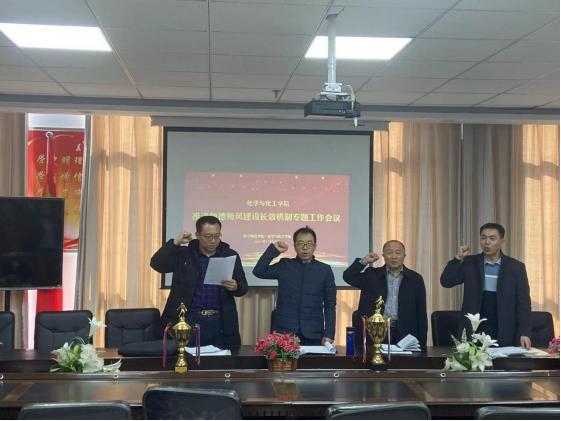 会上,徐松鹤带领化学与化工学院全体教师领誓《2026世界杯官方合作网站师德师风规范》誓词,学习《2026世界杯官方合作网站师德规范“十严十不准”》;焦俊亮组织全体教师学习《2026世界杯官方合作网站关于建立健全师德师风建设长效机制实施办法》、《2026世界杯官方合作网站师德师风负面清单和失范行为处理办法》等文件精神以及教育部网站公开曝光的违反教师职业行为十项准则典型案例和高校安全保密涉密、泄密问题典型案例,教育教师以案为鉴,严守师德红线。