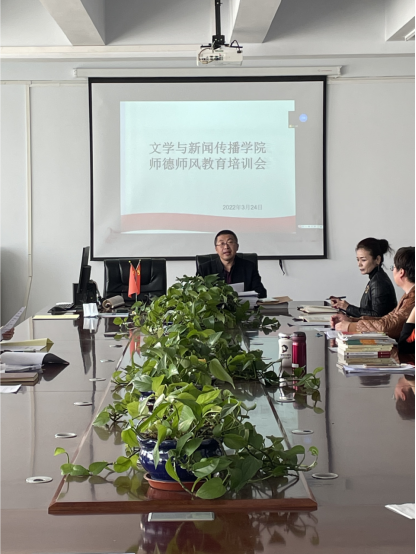 为落实学校师德师风警示教育专题培训会议精神,进一步推进学院师德师风建设工作,3月24日下午,文学与新闻传播学院组织全体教师召开了师德师风警示教育专题培训会。会议由文学与新闻传播学院党总支书记张一弘主持,文学与新闻传播学院全体教师参加。