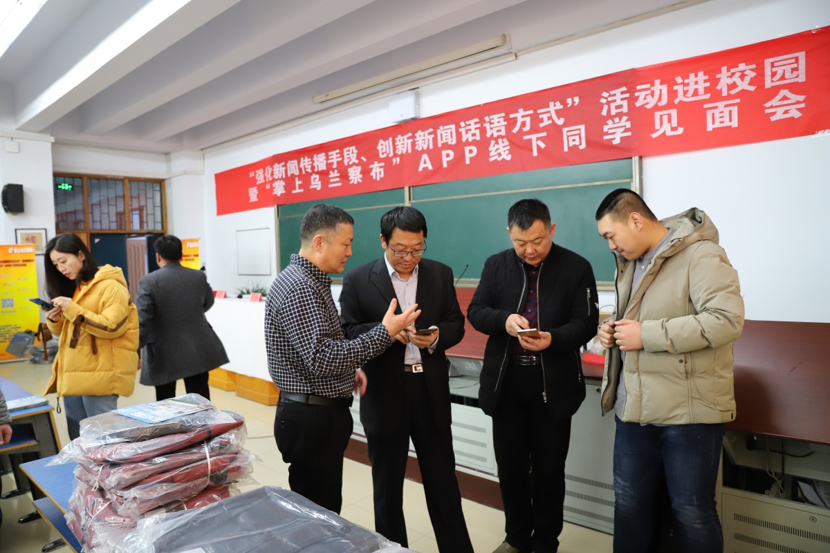 乌兰察布广播电视台新媒体工作人员指引校领导人进行现场扫码下载APP