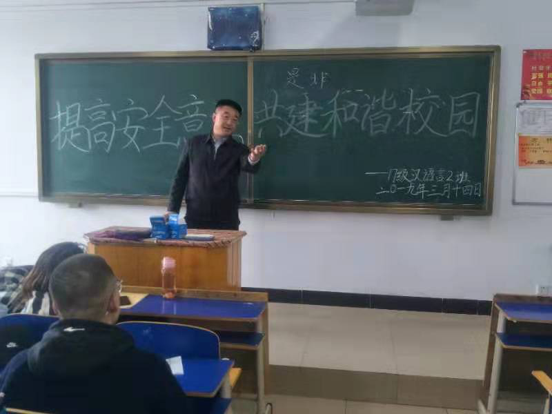 为增强学生的安全防范意识、普及校园安全知识,文学院各班于近期召开“提高安全意识,共建和谐校园”主题班会。世界杯官网党委副书记刘春于3月14日下午深入他所联系的2017级汉语言文学一、二班参加主题班会。文学院党总支书记张一弘,党政办公室副主任郭英、秘书科科长尹晓慧陪同参加。