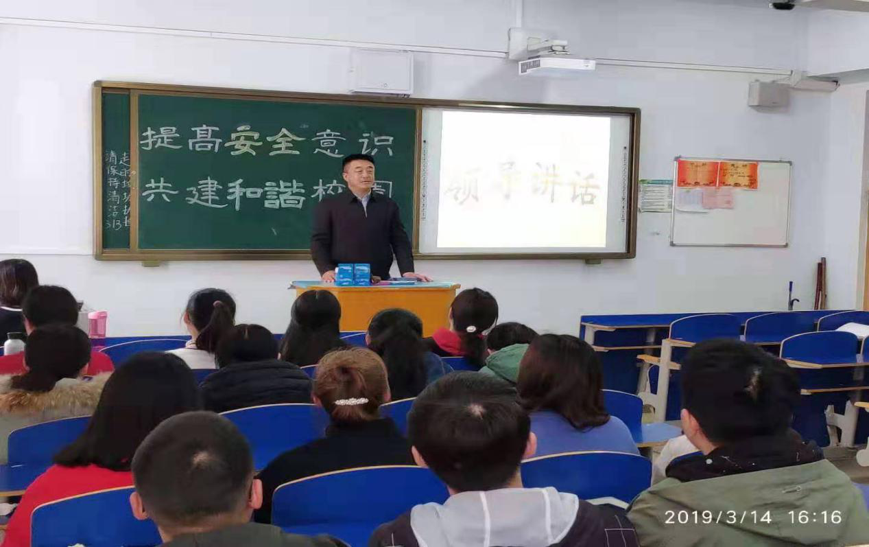 主题班会上,同学们从提升校园安全防范意识等多个方面展开讨论学习。刘春副书记认真聆听班会并与同学们积极互动。他从“衣食住行”等多方面对校园安全知识进行了详尽讲解,并通过生活实例向同学们介绍了如何杜绝校园安全隐患。刘春副书记以“安全意识”为主线,告诫同学们应具备一种居安思危的理性思维,时刻关注身边人身边事,最大限度的排除周围的潜在隐患。他强调:校园安全是大事,但大事都须从小事做起,从细微处着手,关注学生安全是为了学生未来、学校未来着想。比起行为上的安全防范,老师们应从细微处多关心学生身体健康、心理活动和思维方式,以便更好地了解同学,帮助同学”。