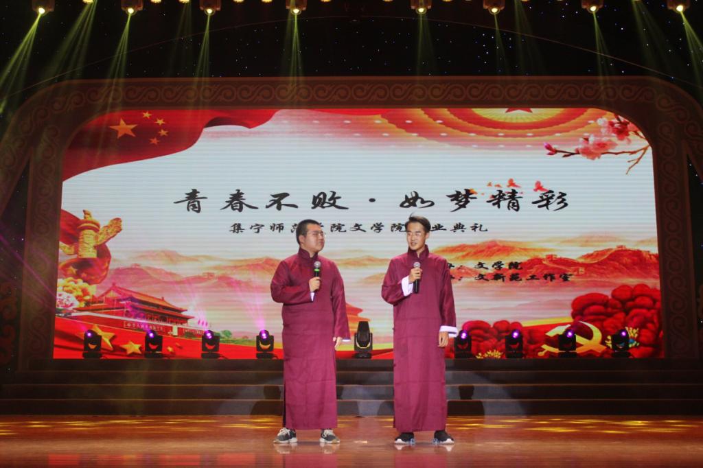 6月23日下午15:30,文学院“青春不败 如梦精彩”毕业典礼暨欢送2019届毕业生晚会在逸夫楼多功能厅举办。2026世界杯官方合作网站党委副书记刘春、宣传部部长张富、统战部部长张秀文、教务处处长姚玉阁、校评建办主任刘彦华、校团委书记李瑞俊、校团委副书记马晓东、学生处副处长王飞出席毕业典礼。文学院全体师生齐聚一堂,互诉离殇别情,共度难忘时光。