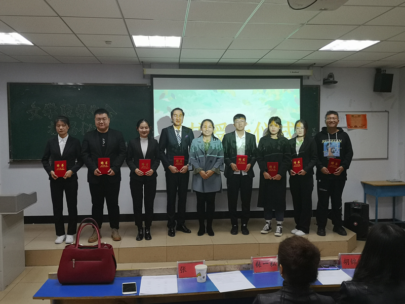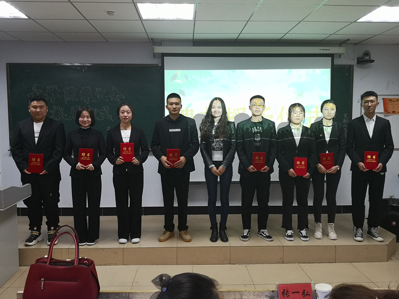 10月17日文学院学生会在主教楼举行了第十届学生会换届仪式。出席仪式的有文学院党总支书记张一弘、团总支书记张炜、学工办主任胡锦博,第十、十一届学生会全体干部成员。