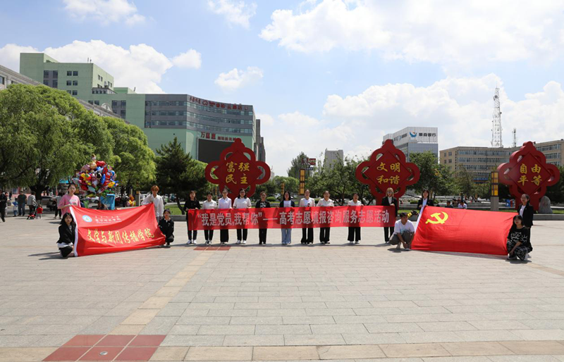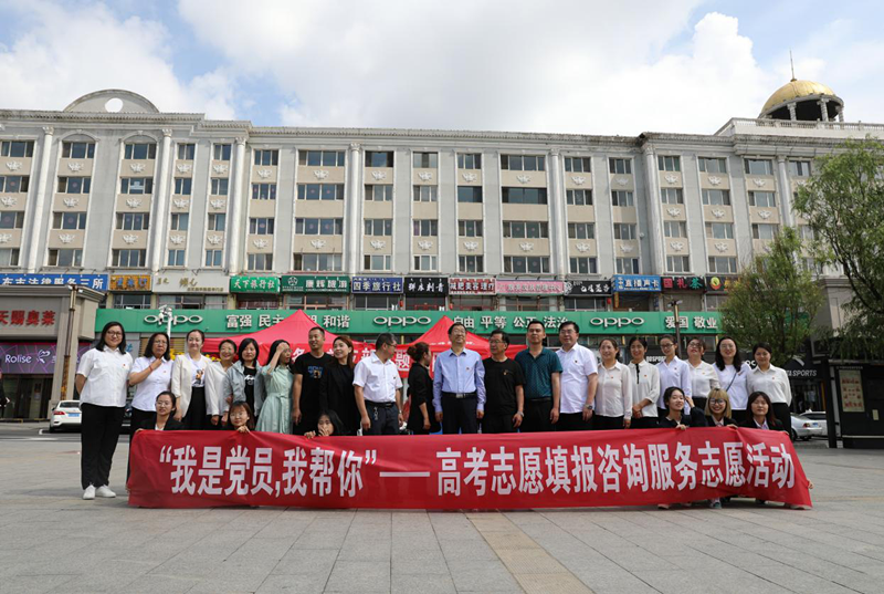 活动现场的师生党员在面对学生和家长的询问时,耐心的进行回复,并对学生的志愿填报提供专业解答。