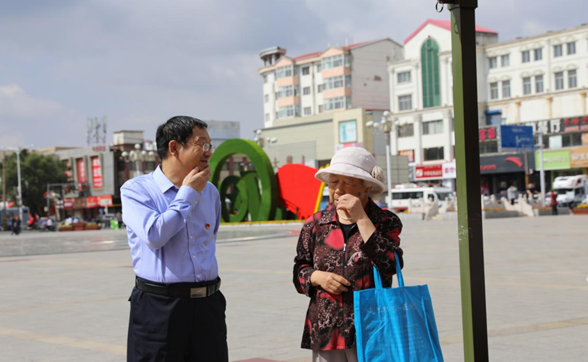 教务处处长姚玉阁细心答复高考考生家长。