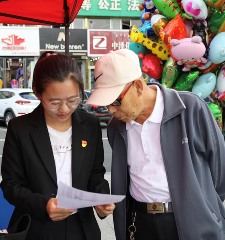 学生党员李晴帮助高考考生家长查找资料。