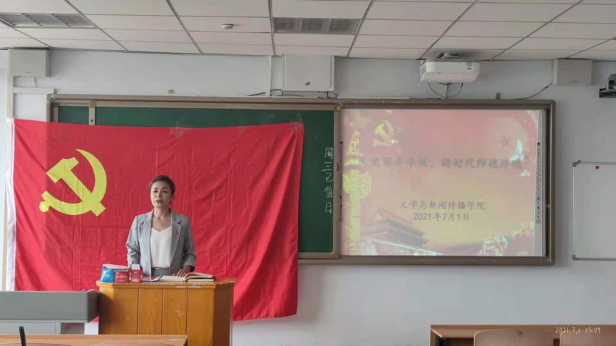 7月1日下午,文学与新闻传播学院举办“庆党百年华诞,铸时代师德师魂”主题党日活动,主题党日活动由党总支书记张一弘主持,全体师生党员参加了本次活动。