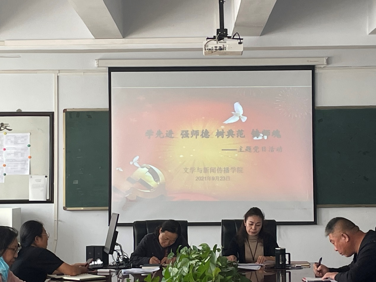 为深入学习习近平总书记关于师德师风的重要论述,落实立德树人根本任务,进一步加强学院师德师风建设水平,9月23日下午,文学与新闻传播学院开展“学先进、强师德、树典范、铸师魂”主题党日活动。本次活动由文学与新闻传播学院党总支书记张一弘主持,文学与新闻传播学院全体教师参加。