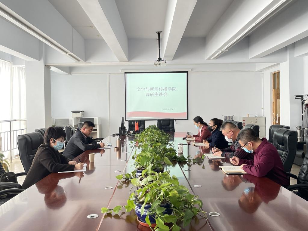 张一弘围绕文学与新闻传播学院的党建工作、学生工作做总体汇报。李俊就汉语言文学师范专业认证的工作进展情况和申硕工作的进展情况做总体汇报。