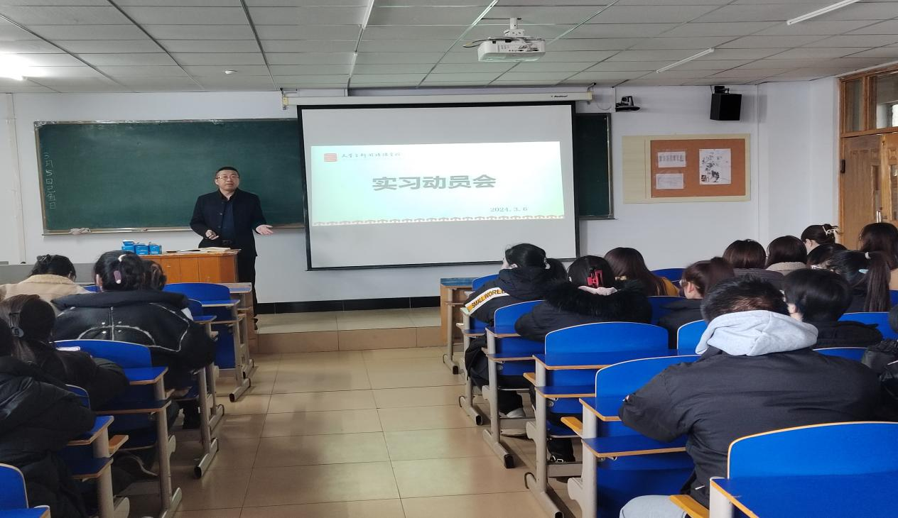 郭鹏从课程目标、实习内容、考核方式、实习安排情况、实习注意事项等方面展开说明,强调实习对于学生成长的重要意义,希望学生们能够把握住这次实习机会,以积极、勤奋的态度将学到的专业知识、技能运用到实践中,为未来工作打下良好的基础,也为下一届学生起到示范作用。