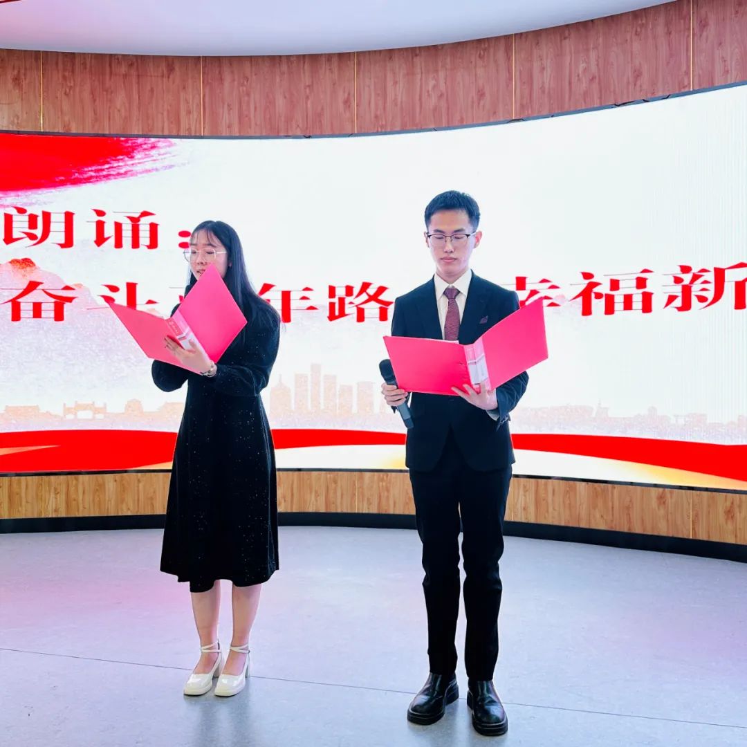 随后,文学与新闻传播学院的两位学生代表声情并茂地朗诵了《奋斗百年路,幸福新征程》,用诗意的语言展现了中国共产党领导人民奋斗的光辉历程。