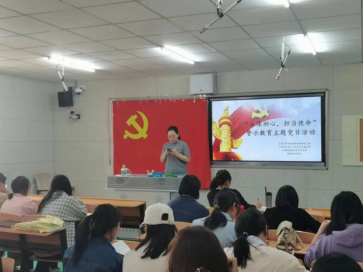 为进一步加强对广大党员的党性党风党纪教育,推动学校党风廉政建设和党纪学习教育的深入开展,4月25日下午,文学与新闻传播学院汉语言文学系学生党支部联合新闻系学生党支部、教师党支部开展“永葆初心,担当使命”警示教育主题党日活动。文学与新闻传播学院汉语言文学系党支部书记郝晓宏主持会议,文学与新闻传播学院全体教师、学生党员参加活动。