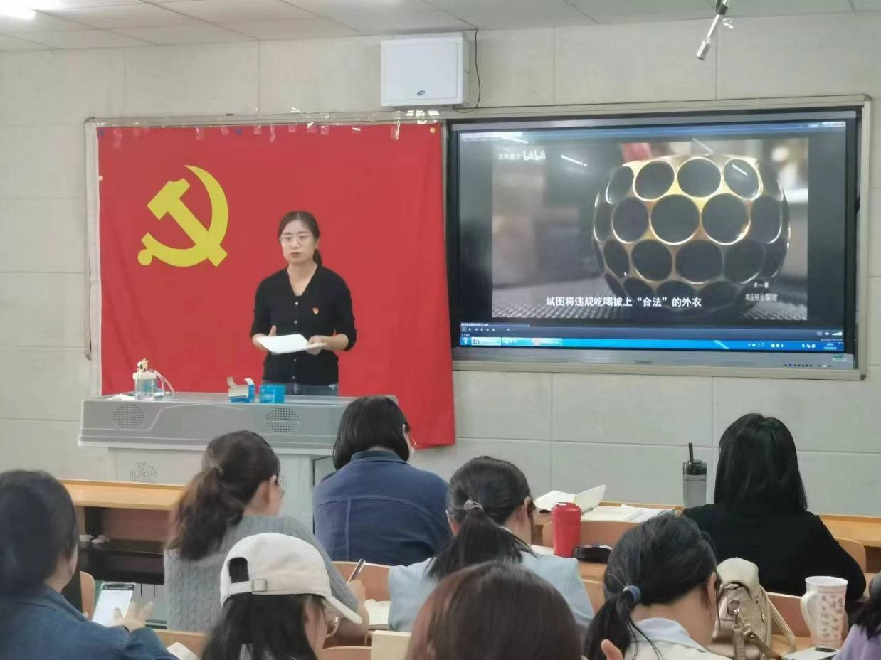 教师党员于英杰领学《学案例、守党纪,把严明政治纪律和政治规矩摆在第一位置》。