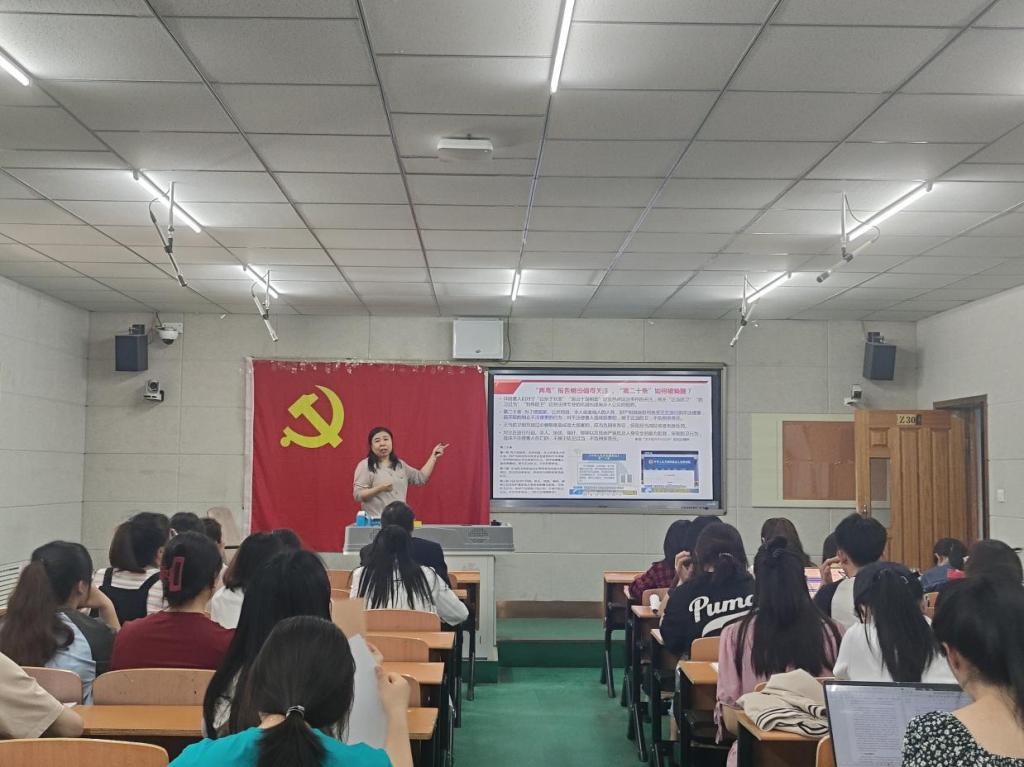 为深入学习贯彻2024年全国“两会”精神,切实提升广大党员的思想认识和行动自觉,按照学校要求,5月23日下午,文学与新闻传播学院举办“发展新质生产力,推进高质量发展”主题讲座。本次讲座由马克思主义学院院长杨明霞进行主题宣讲,文学与新闻传播学院全体教师、学生党员参加。