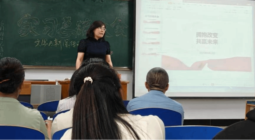 2025年6月12日下午,文学与新闻传播学院召开2025年度教育实习总结大会。实践教研室主任银燕主持会议,学院全体教师和2021级毕业生参加大会。