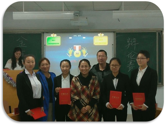 2016年第八届“金鹰杯”大学生辩论赛评委老师以及获奖学生留影