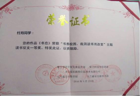 “书香校园”主题征文活动在世界杯官网已经连续举办了六年,并分别被内蒙古自治区和乌兰察布市评为“全民阅读优秀项目”,这一活动已经成为学校的品牌文化活动,也是乌兰察布市文化活动的亮点之一。