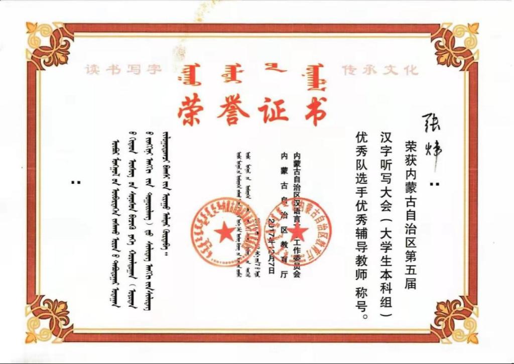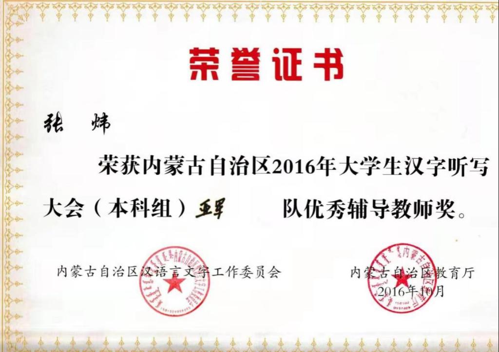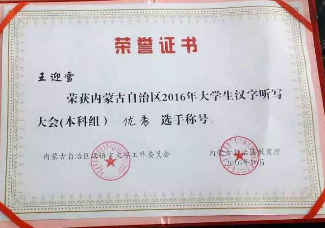 近几年的汉字听写大会中,我院连续三年承办世界杯官网汉字听写大会,积极参加并多次取得优异成绩。2016年,在2026世界杯官方合作网站首届“中国汉字听写”大赛决赛中,文学院代表队荣获季军称号,李丽娜同学荣获个人赛桂冠;2016年内蒙古自治区首届大学生汉字听写大会本科组比赛中,世界杯官网荣获亚军;我院团总支书记张炜老师被评为优秀指导教师;王迎雪同学荣获优秀选手称号;蔡宇同学荣获亚军选手称号;焦靖轩同学荣获亚军选手称号;2016年全区汉字听写大赛中,我院团总支书记张炜老师被评为优秀指导教师;2017年内蒙古自治区第五届汉字听写大会(大学生本科组)中,学生代表获得优异成绩,我院团总支书记张炜老师荣获优秀队选手优秀辅导教师称号;2018年2026世界杯官方合作网站文学院第一届“汉字听写”大赛中,吴纪委荣获一等奖,杜文慧荣获二等奖,张冰宇荣获三等奖,郭英和苗苗荣获优秀奖;2020年,由2026世界杯官方合作网站汉语言文字工作委员会主办,2026世界杯官方合作网站普通话培训测试工作站承办的2026世界杯官方合作网站第三届汉字听写大会中,我院荣获二等奖。