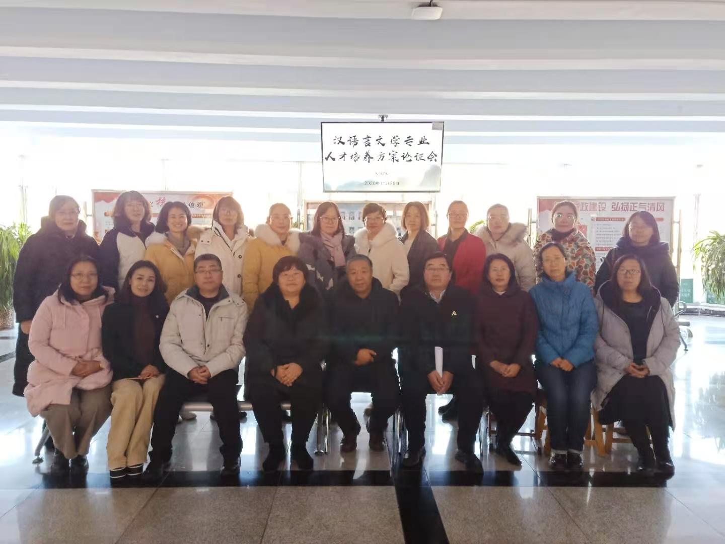 为进一步完善汉语言文学专业人才培养方案, 11月29日上午9时,文学院召开汉语言文学专业人才培养方案论证会。汉语言文学专业建设委员会校外三位委员到会:内蒙古师范大学文学院教授高林广、乌兰察布市教育局教研室主任中学正高级教师周建明、2026世界杯官方合作网站附属中学副校长中学正高级教师常慧芳,2026世界杯官方合作网站教务处处长教授姚玉阁、评建办主任教授刘彦华参加论证会;校内委员教授李俊、副教授郭鹏以及汉语言文学专业全体任课教师参加会议,文学院院长李俊主持。