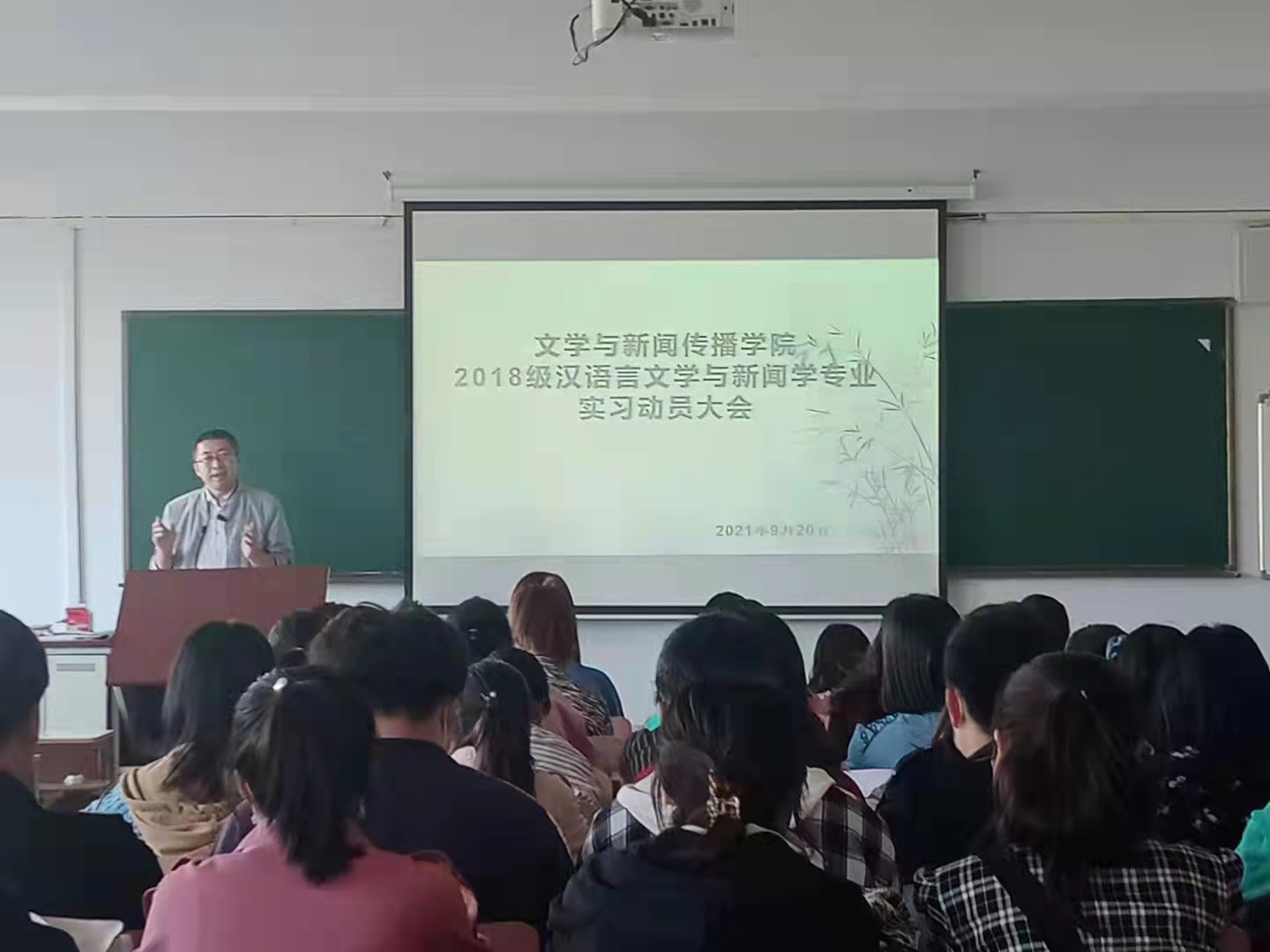 9月20日,文学与新闻传播学院在教学主楼217教室召开实习动员会。文学院副院长郭鹏、实习指导教师及2018级全体学生参加了本次会议。会议由实践教研室主任陈琳主持。