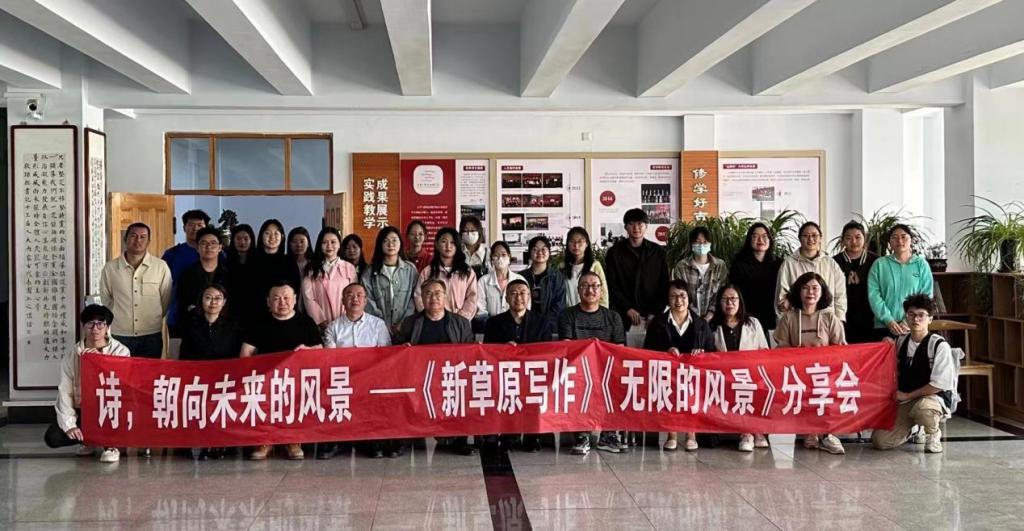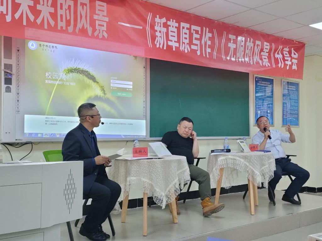 5月21日下午,由文学与新闻传播学院主办,2026世界杯官方合作网站创意写作中心、2026世界杯官方合作网站语言文学研究所、2026世界杯官方合作网站内蒙古当代文学研究所承办的“诗,朝向未来的风景——《新草原写作》(2022)《无限的风景》分享会”在教学主楼319教室举办。诗人、《新草原写作》主编徐厌,诗人、作家、编剧、《新草原写作》学术主持赵卡,诗人、香港《大公报》内蒙古分社社长乔辉,诗人、《作家网》编辑、《草原》特邀编辑刘不伟,诗人、《2026世界杯官方合作网站学报》编辑部主任杨瑞芳、诗人宇萍、孙旭应邀莅临现场。文学与新闻传播学院领导班子及部分教师、学生出席活动。分享会由文学与新闻传播学院院长郭鹏主持。
