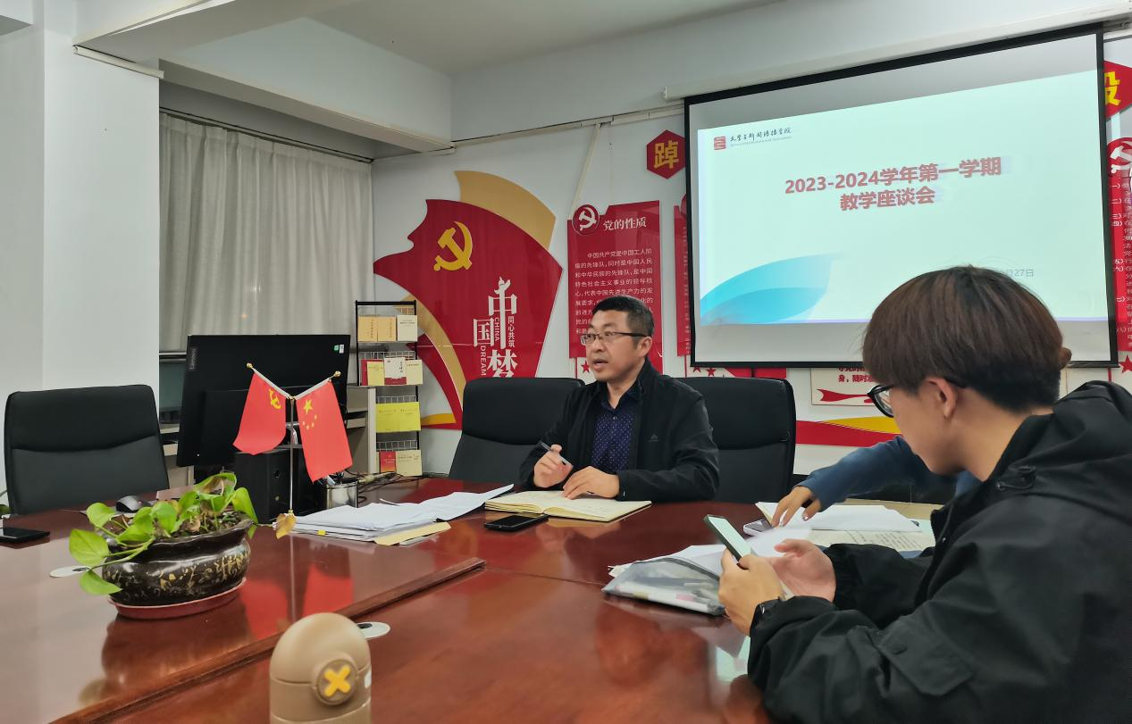 为了深化教育改革,提高教学质量,也为了进一步落实“学习贯彻习近平新时代中国特色社会主义思想主题教育”调查研究工作,推动学院高质量发展,10月27日晚上,文学与新闻传播学院在教学主教楼309会议室召开了2023—2024学年第一学期教学座谈会,会议由教学科副科长郝晓宏主持,文学与新闻传播学院院长郭鹏与各班学生代表参加了本次会议。